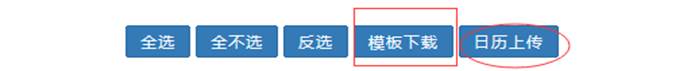 6.教师可根据需要,在“新增教学日历”页面下方点击“模版下载”,在该课程的模版中填写完成各项内容后,点击“日历上传”将已填写完成的模版导入到系统中。(备注:模板导入功能只适用于下载的对应教学班的模板,相同课程不同教学班级如果教学进度如果一致,应将进度计划内容复制粘贴至每个教学班的模板后一一导入,以免出错。)