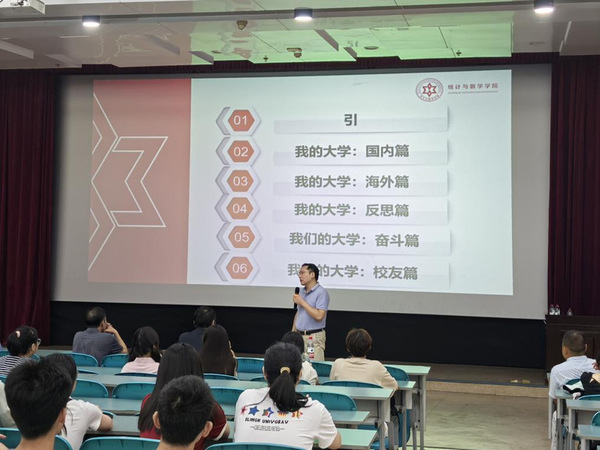 见面会开始,由钟立伟老师介绍参加此次见面会领导并致开幕词,接着由张志刚院长给同学们分享他的大学生活和他上大学期间一些印象深刻的事情。张院长从引言—国内篇—海外篇—反思篇—奋斗篇—校友篇六个方面分享了自身以及校友的学习工作经历,并给予同学们一些学习和生活上的建议,介绍了大学的学习特点(课堂信息量大,课堂练习时间少,自主学习要求高),便于同学们更好的适应大学生活,希望新生树立目标导向,坚持以终为始的理念,做好大学四年学业规划,培养终身学习的能力。最后张院长寄语新生们要学会独立自主,要有责任担当,并祝愿同学们能有一段美好的大学时光。