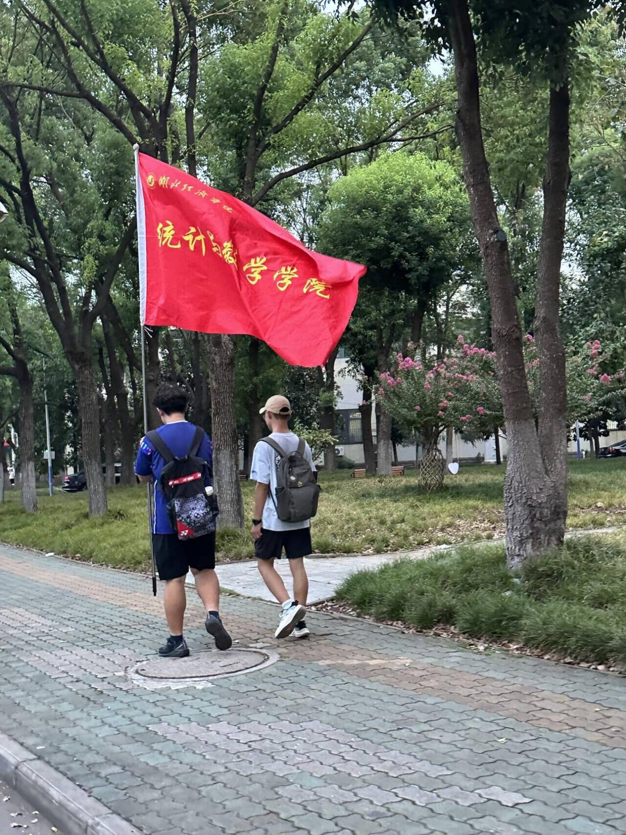 从北大门校训石出发,瞻仰张之洞的石像,来到东区操场上,是学子们运动的身姿,吸引着新生们驻足观瞻。带队同学在途中为新生答疑解惑,分享日常学习生活。在参观过程中,新生们切身感受校园的优美环境和完善的学习生活设施,增强了对学校学院的归属感、认同感。