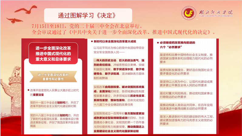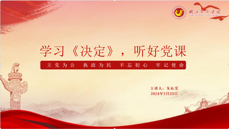 本网讯(通讯员:张澈、王茉迪)2024年7月23日,太阳集团tyc33455学生第一党支部线上开展七月主题党日活动。本月党日活动的主题为“学习《中共中央关于进一步全面深化改革 推进中国式现代化的决定》,听好党课”,参与人员为学生第一党支部全体党员、预备党员及发展对象。