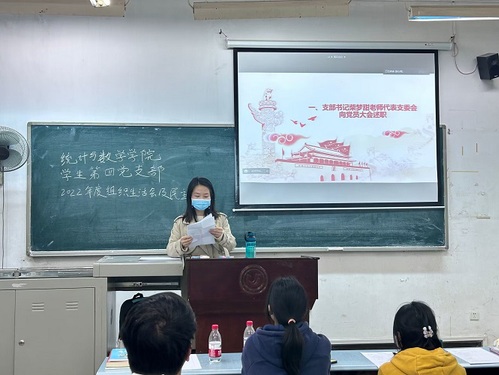 会议第一项,学生第四党支部书记柴梦甜老师代表支委会向党员大会述职。柴梦甜老师从思想建设、组织建设、党员发展工作等方面进行了总结,指出了现阶段存在的问题并提出相应的解决措施。