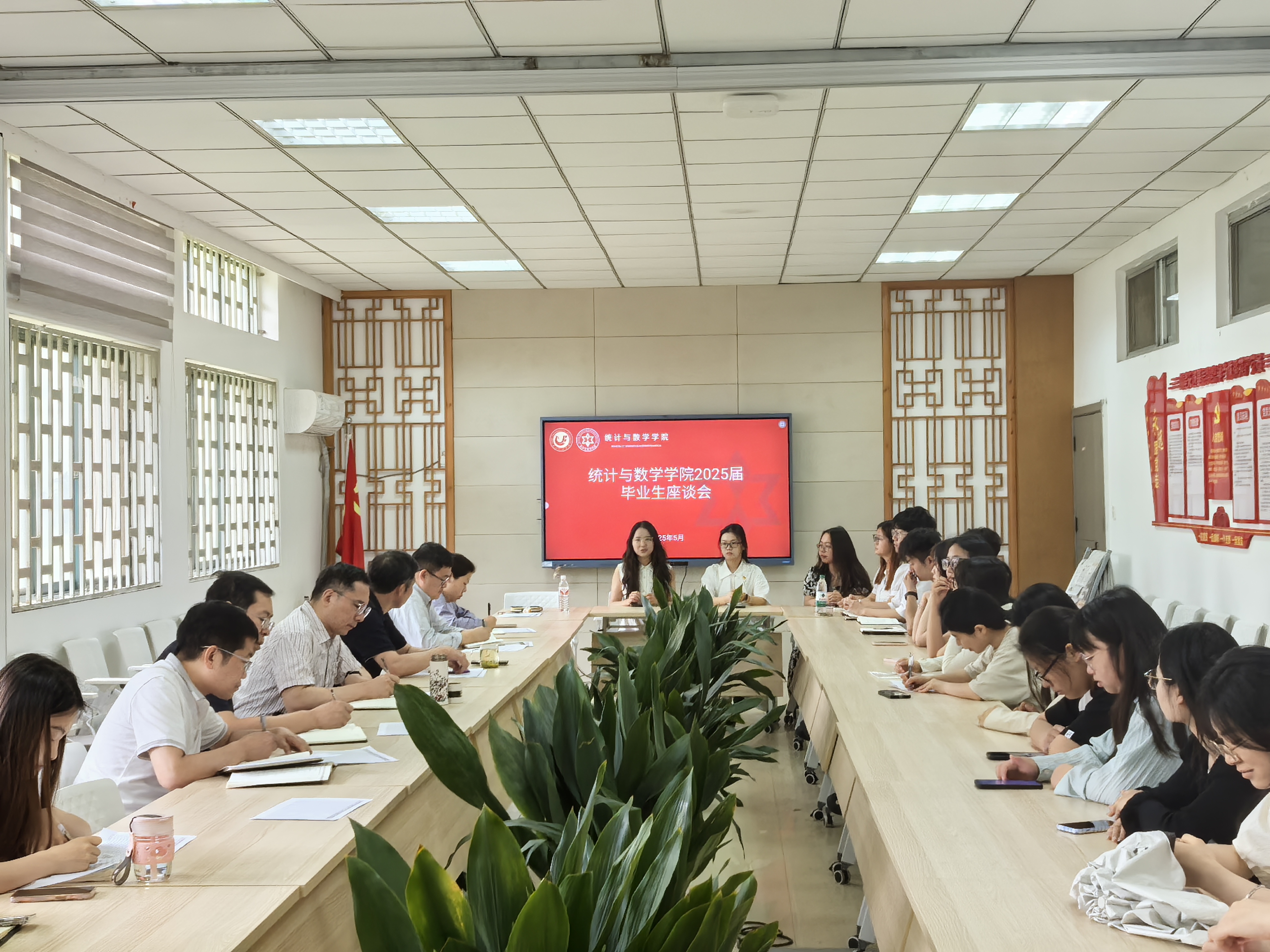 本网讯2025年5月7日上午,我院召开2025届毕业生党员座谈会,学院领导班子成员王华、张志刚、王磊、王玉宝、张艳伟,各系主任、毕业班辅导员及毕业生党员代表齐聚一堂,围绕学生成长、学院建设及未来发展规划展开深入交流。会议聚焦就业指导、党建创新、学业支持等议题,毕业生党员结合自身经历积极建言,学院领导现场回应关切,凝聚共识。