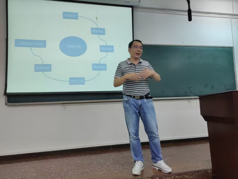 教研会上,副院长张志刚教授就自己在“立德树人”、“三全育人”、“课程思政”等如何融入大数据人才培养方案方面的思考向与会教师进行了分享,并对专业发展和课程建设提出了很多建设性的意见。