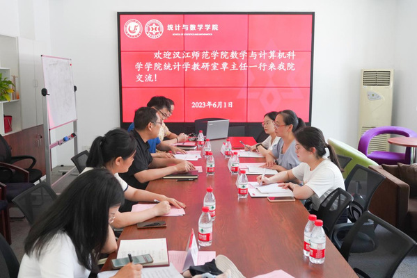 6月1日下午,汉江师范学院数学与计算机学院统计学教研室主任覃晓琼一行来我院调研交流。调研交流会在知行楼B座124举行。太阳集团tyc33455副院长王磊、统计系主任夏伦、副主任李倩及骨干教师叶提芳、张秀参加会议,会议由夏伦主持。