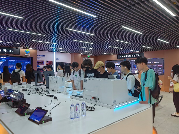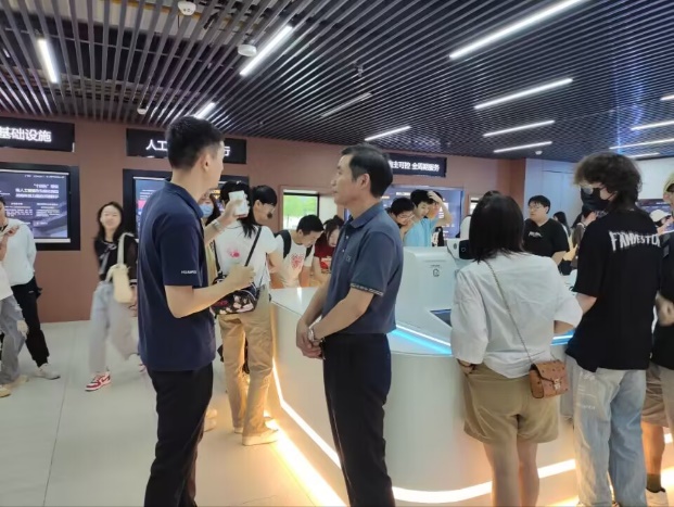 学院党委书记王华带领班级全体学生参观了武汉“双中心”, 华为武汉人工智能计算中心人才生态总监王响向全体师生介绍了武汉人工智能计算中心和超算中心的建设历程和未来规划。“双中心”是武汉国家新一代人工智能创新发展实验区的重要组成部分,算力驱动的人工智能正在成为引领武汉数字经济发展的新引擎。本次学习参观活动,为同学们提供了理论与实践相结合的机会,加深了同学们对大数据专业与人工智能技术的兴趣与热爱,看到了专业未来无限的可能;鼓励同学们创新探索,为人工智能领域和社会发展贡献新生力量。