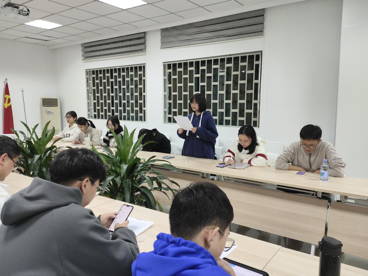 本网讯(通讯员:陈冰洁)2023年11月20日,根据党支部发展党员工作计划,经征求党员和群众意见、支部党员大会审查同意,学生第四党支部举行接收预备党员支部大会,此次会议主要讨论发展对象朱婧琳、付子晗、卞怀玉、鲁冰彬、潘诗诗、周念、张元梦7名同志入党问题的事宜。本次会议参会人员为支部书记柴梦甜老师、第四支部全体党员以及对应入党介绍人。