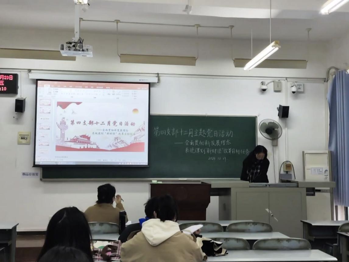 本网讯(通讯员:陈冰洁)2023年12月29日,太阳集团tyc33455学生第四党支部在教1-311开展了十二月主题党日活动,本次活动主题为“全面贯彻新发展理念,系统谋划‘新财经’改革目标任务”,由吴靖文同志主持,参会人员为学生第四党支部全体党员和发展对象。