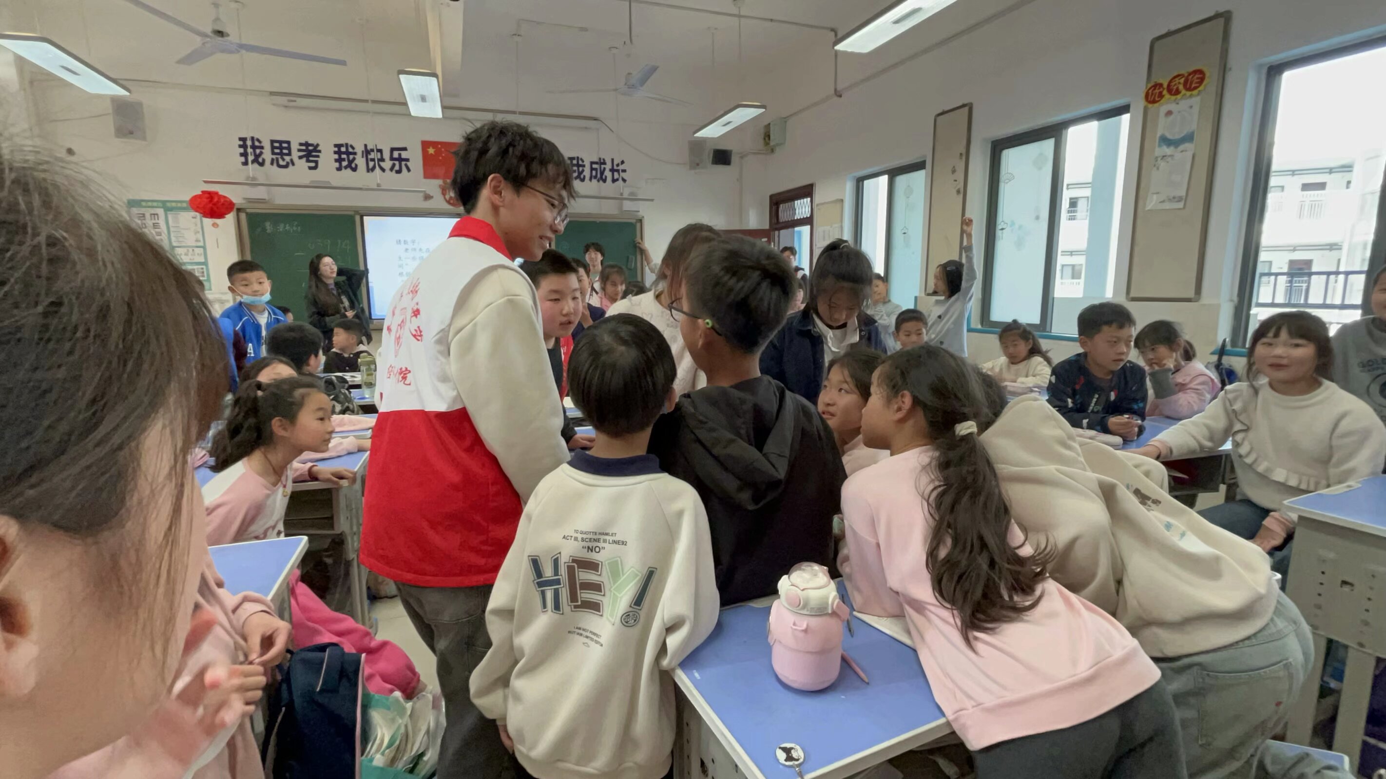本网讯(通讯员:彭宇堃 摄影:彭宇堃 审稿:吴丝雨)为弘扬中华传统文化,培养学生对于数学学习的热情,4月28日,我院青协联合数模协会赴藏龙学校开展“古韵数学—传统文化中的数学知识”授课活动。